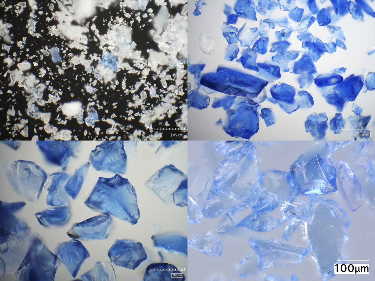 幕末に流通したコバルトガラス顔料4点の顕微鏡画像